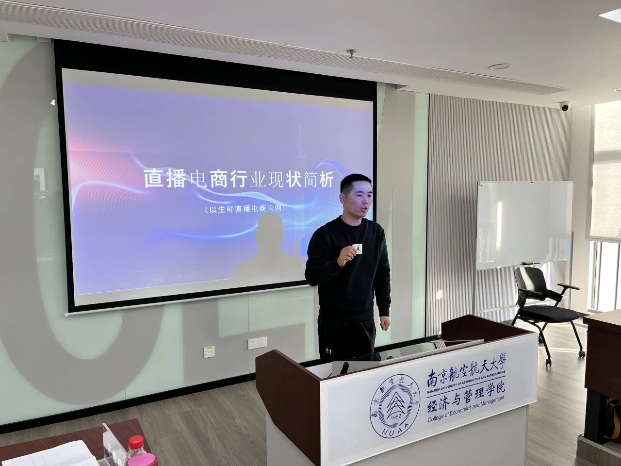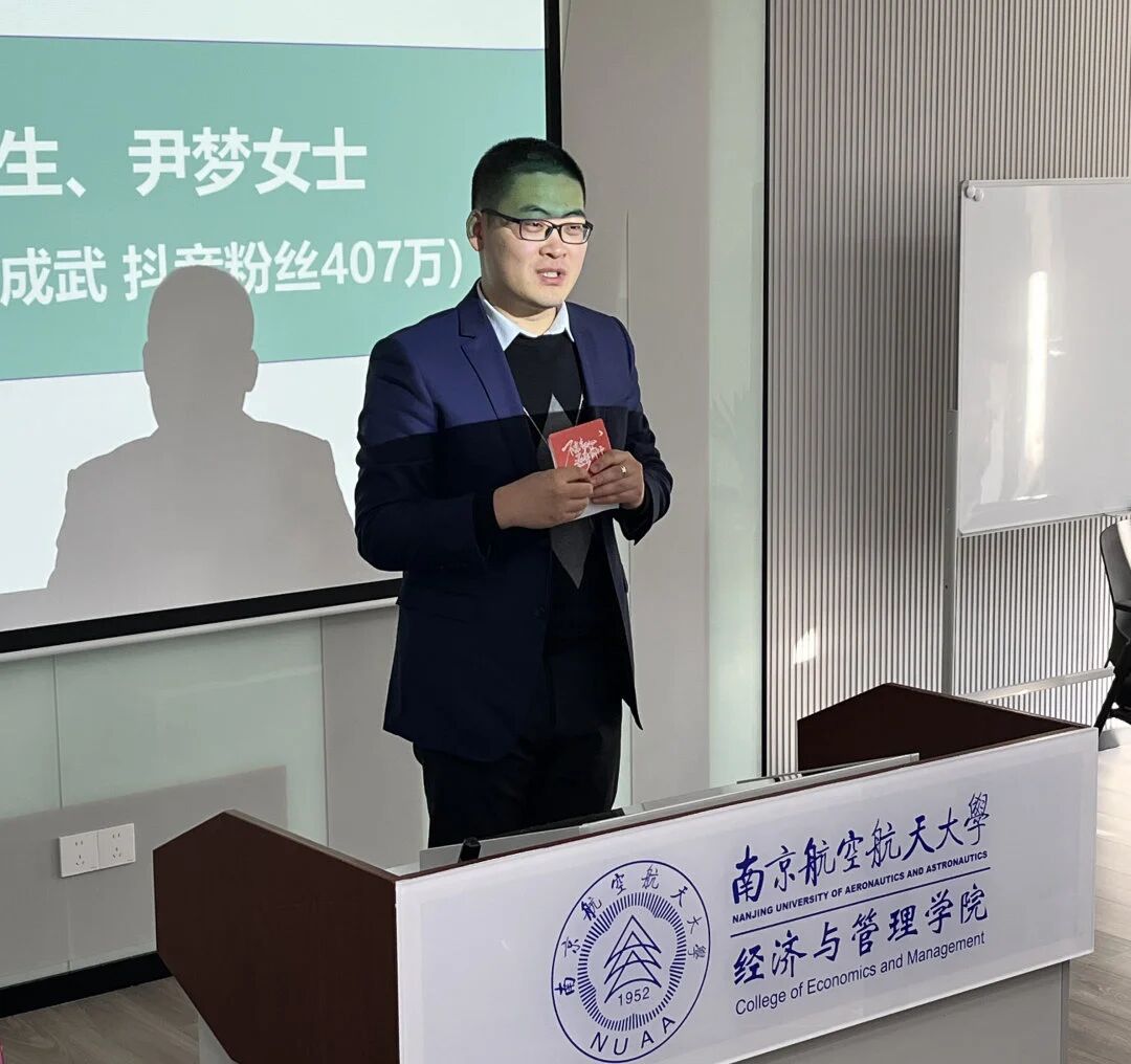 2024年12月14日下午,南京航空航天大学“引航商科论坛”第五期活动在经管学院A0409教室如期举办。本次论坛以“个人IP打造,洞见直播经济”为核心主题,聚焦自媒体时代直播经济的发展态势与未来潜能,旨在为同学们搭建与行业大咖深度交流的平台,助力大家洞悉直播赛道的核心逻辑与实践路径。