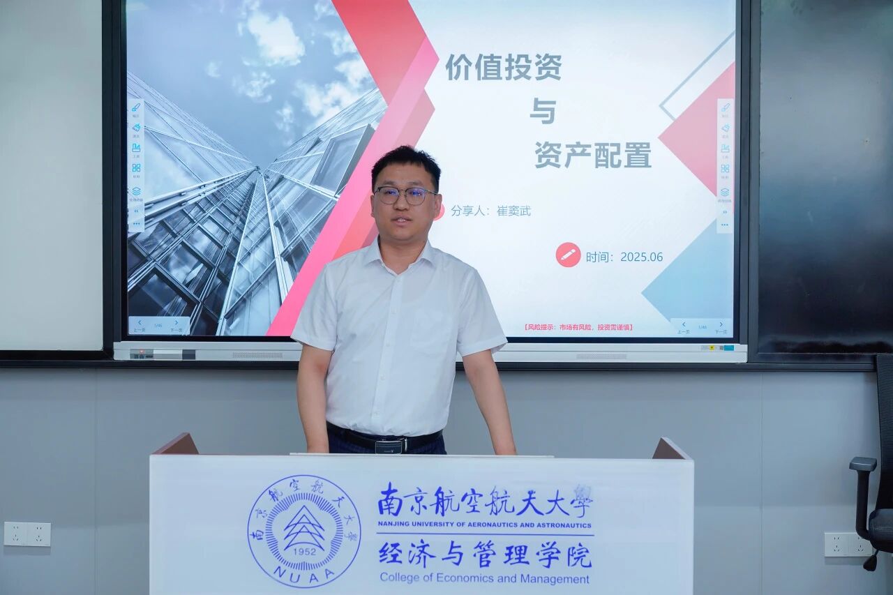 分享嘉宾崔窦武现任招商证券郑州部资深区域经理,担任2024级MBA江宁周末班学习委员,拥有8余年二级市场从业经验。他聚焦个人财富管理主题,带来了关于价值投资与资产配置的实用分享。