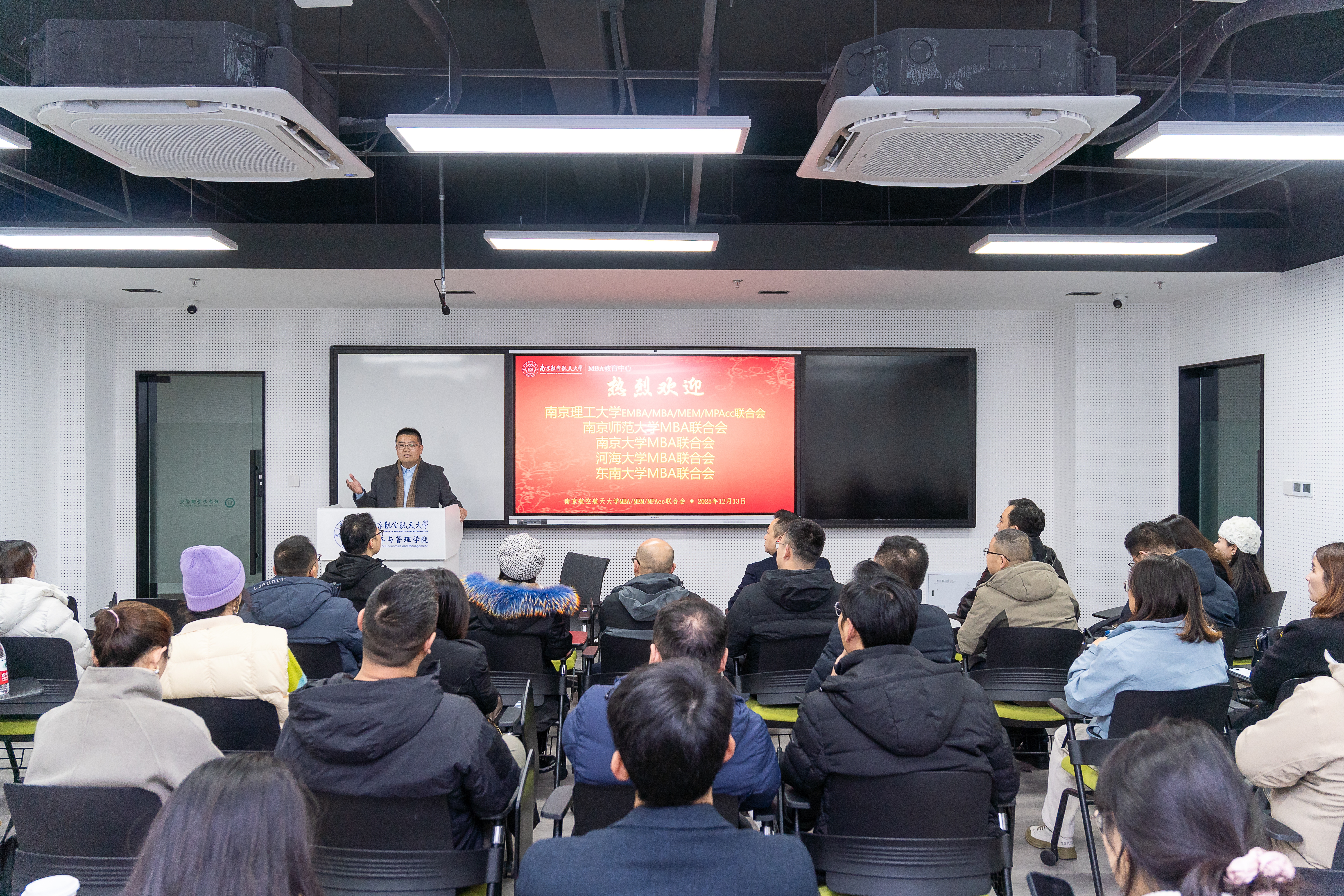 为构建南京高校MBA学生之间的资源共享与协同发展,2025年12月13日,由南京航空航天大学第十四届MBA/MEM/MPAcc联合会(以下简称“南航联合会”)主办的“南京高校MBA⁺联合会互访”首期活动在南京航空航天大学(以下简称“南航”)将军路校区顺利开展。
