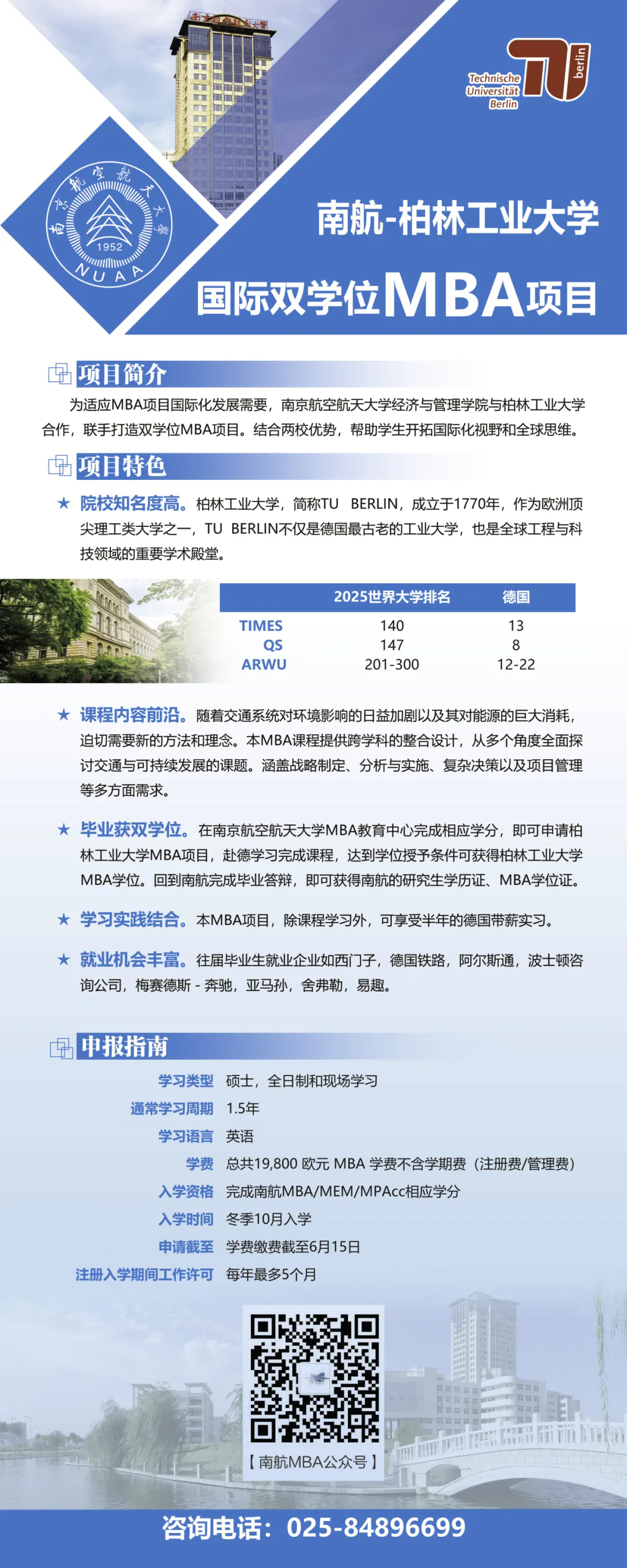 南航-柏林工业大学国际双学位MBA项目招生简章